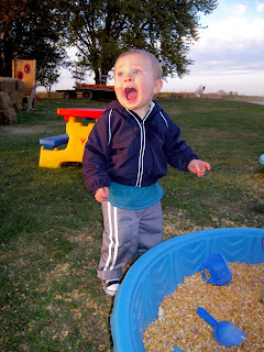 Owen wasn't so much interested in the apples at the orchard (we actually left before the picking even began), but he sure was intrigued by the pumpkins!